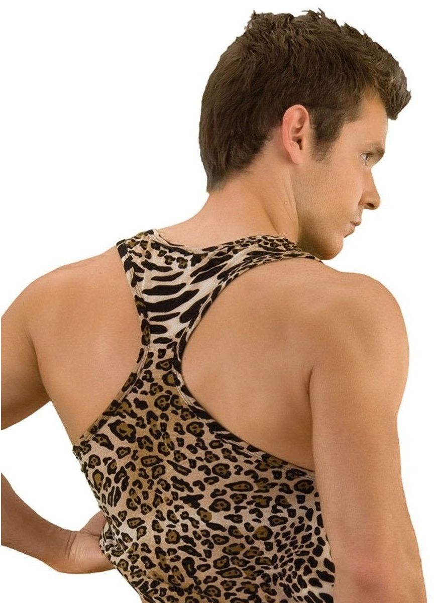 Майка-борцовка для мужчин на широких лямках красочной леопардовой расцветки. Трусики не входят в комплект!